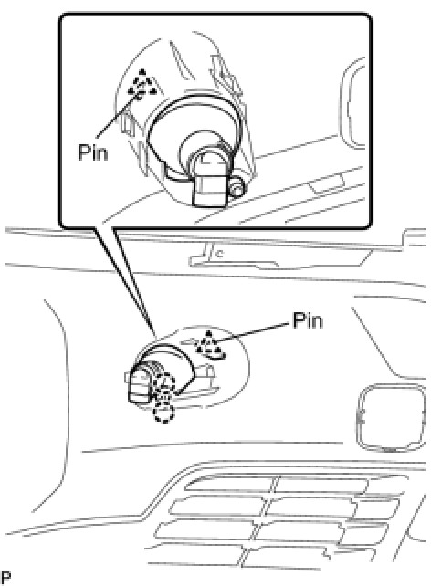 (a) Install the fog light assembly with the 2 claws and the 2 pins.