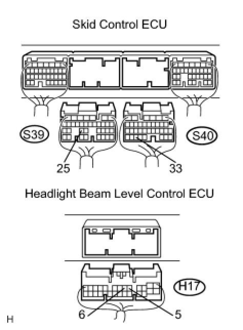 (a) Disconnect the connectors from the skid control ECU and the headlight beam level control ECU.