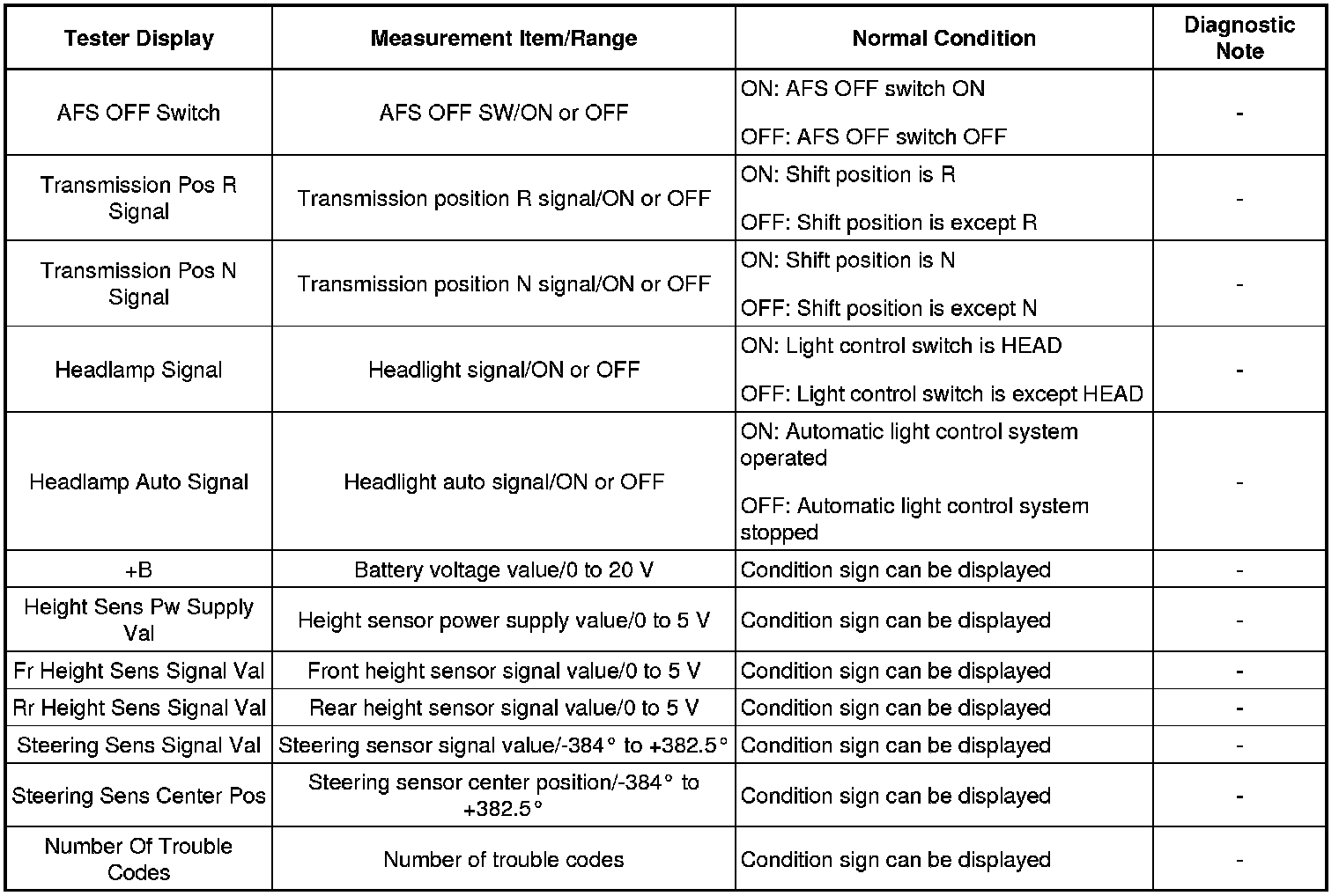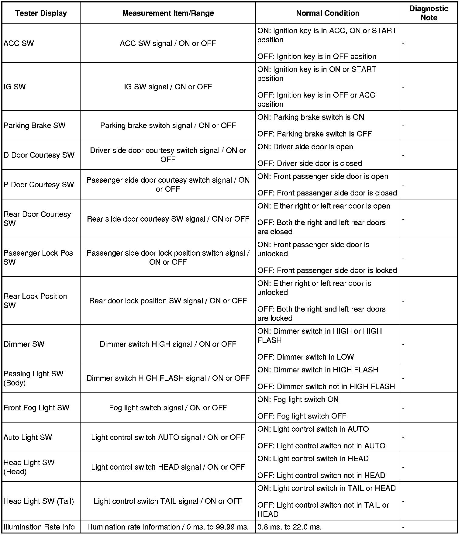 HINT: Using the Techstream DATA LIST allows switch, actuator and other item values to be read without removing any parts. Reading the DATA LIST early in troubleshooting is one way to save time.