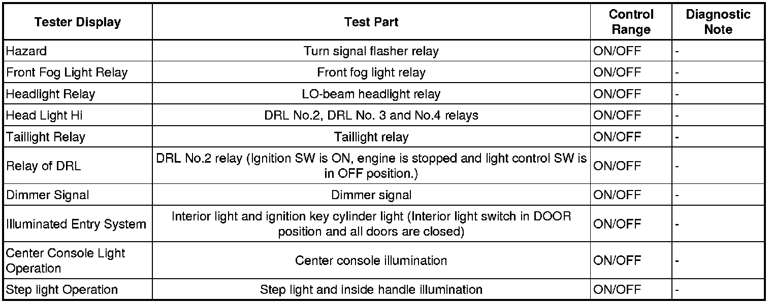 HINT: Using the Techstream to perform Active Tests allows relays, VSVs, actuators and other items to be operated without removing any parts. This non-intrusive functional inspection can be very useful because intermittent operation may be discovered before parts or wiring is disturbed. Performing Active Tests early in troubleshooting is one way to save diagnostic time. Data List information can be displayed while performing Active Tests.
