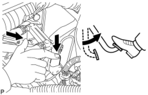 (b) Check that the parking brake is applied and turn the ignition switch to the ON position.