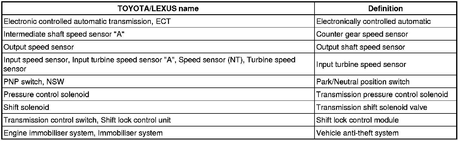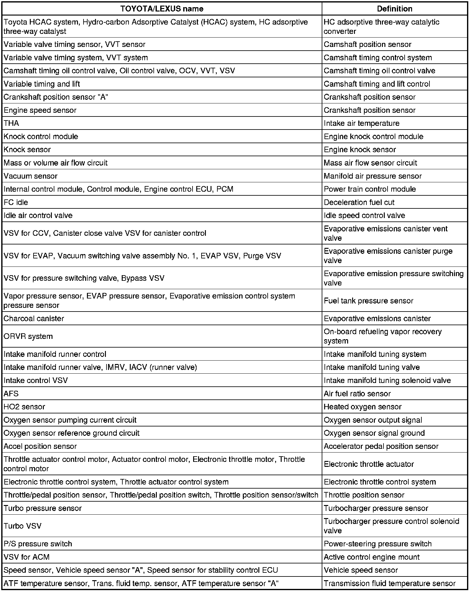 3MZ-FE ENGINE CONTROL SYSTEM: SFI SYSTEM: PART AND SYSTEM NAME LIST