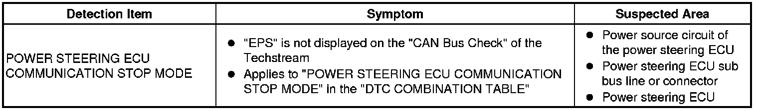 CAN COMMUNICATION SYSTEM: Power Steering ECU Communication Stop Mode