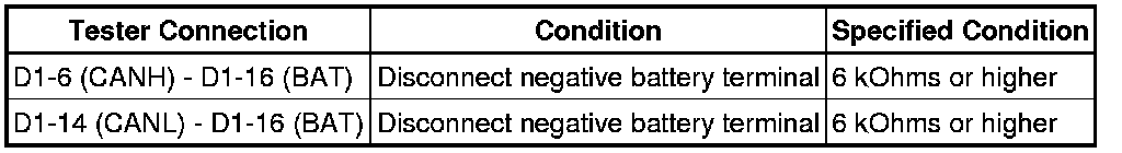 6. CHECK FOR SHORT TO +B IN CAN NO. 1 BUS (CANH, CANL - BAT)