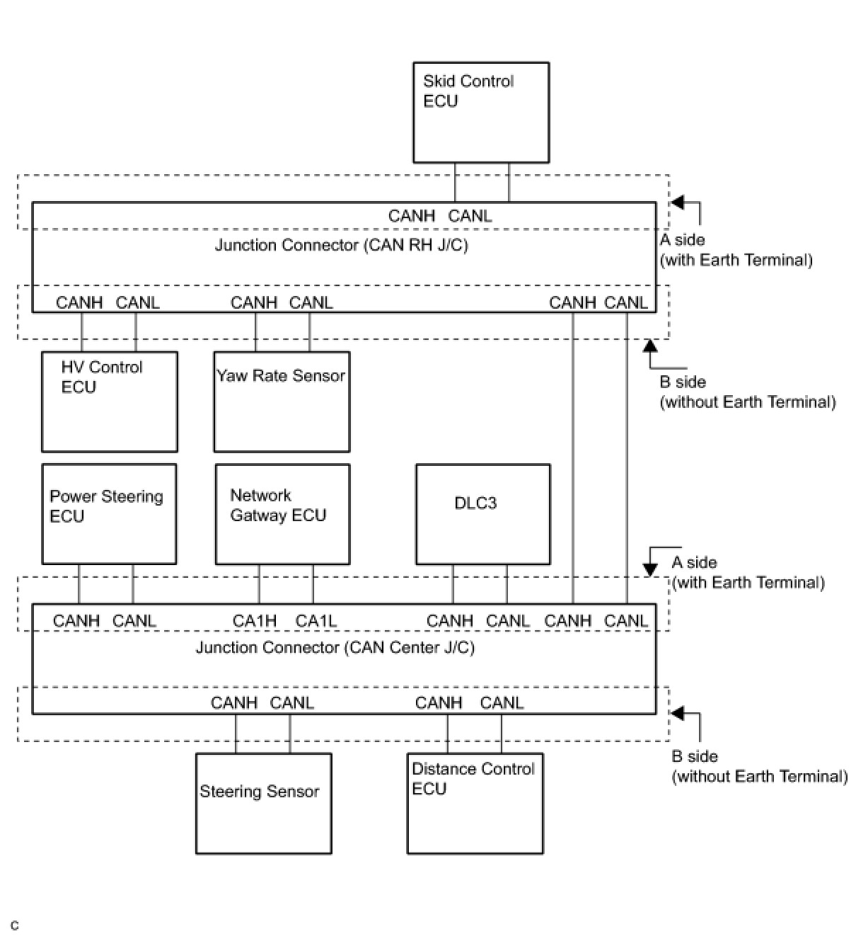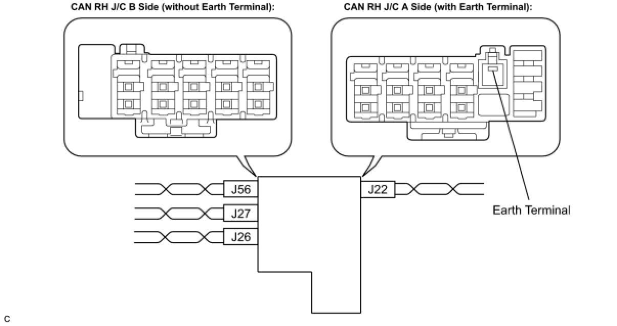 (c) The terminals of the CAN J/C connectors.