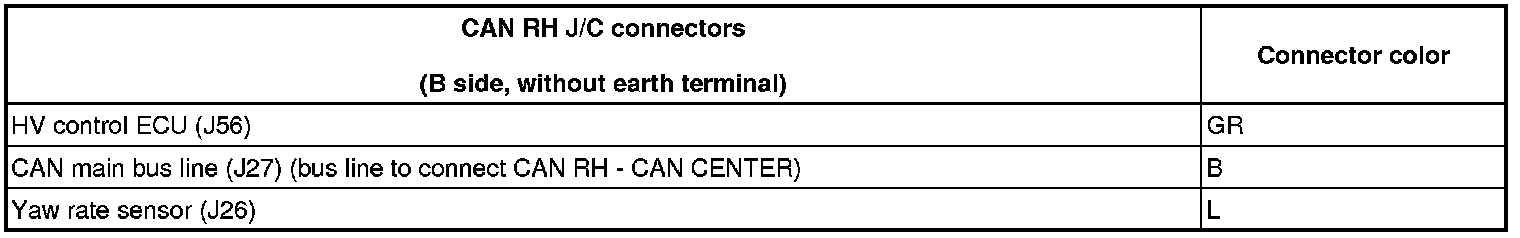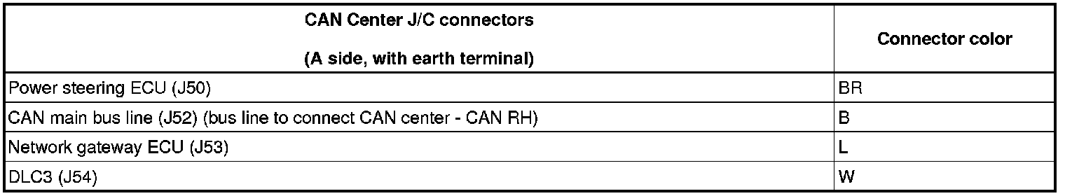 - The connectors connected to the CAN J/C can be distinguished by the colors of the bus lines and the connecting side of the connector.