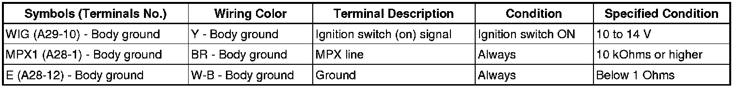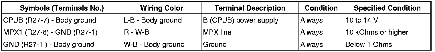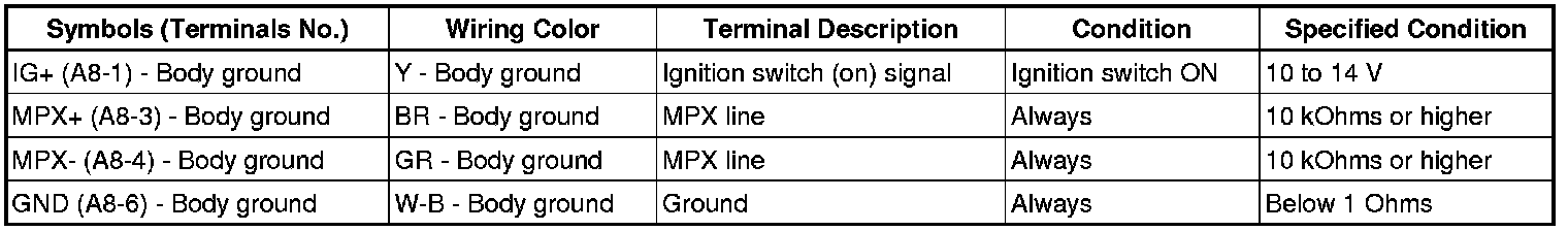 If the result is not as specified, there may be a malfunction on the wire harness side.
