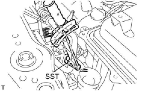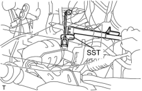 (b) Using SST, fully tighten the air fuel ratio sensor to the exhaust manifold converter sub-assembly No.2.