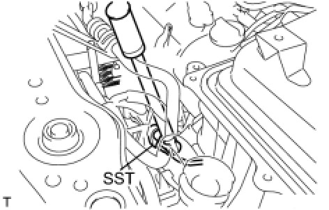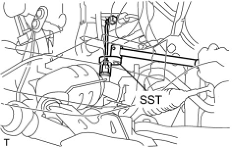 (b) Using SST, remove the air fuel ratio sensor from the exhaust manifold converter sub-assembly No.2.