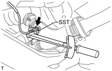 (b) Using SST, fully tighten the oxygen sensor to the exhaust pipe sub-assembly front No.3.