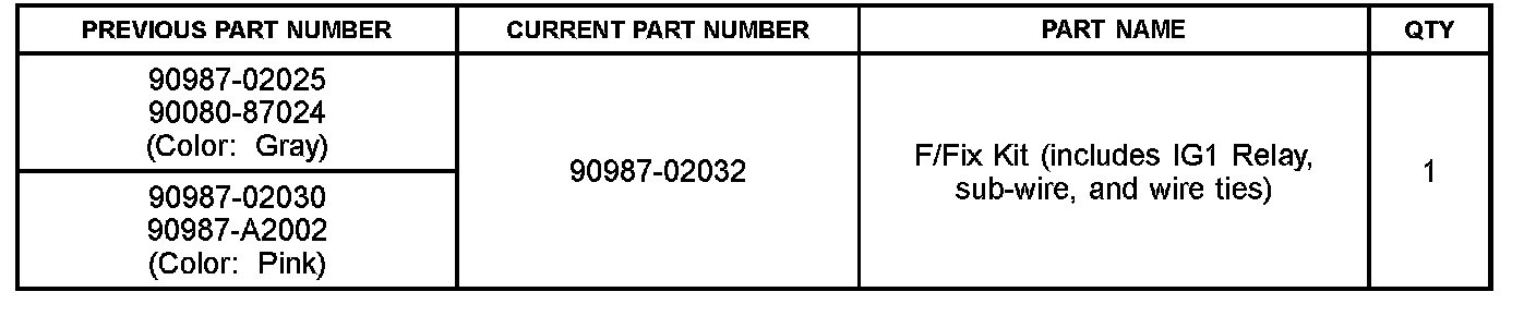 Some customers may experience multiple warning lights illuminated vehicle not shifting from park to drive and other accessories becoming inoperative after the vehicle has cold soaked in sub-freezing (below 14 F [-10 C]) ambient air temperatures. A new relay and wire harness has been made available to improve this condition. Use the following procedure to address this concern.