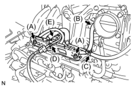 (b) Connect the fuel vapor feed hose No.2 (B).