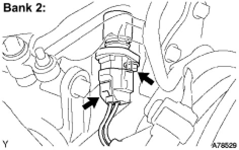 (a) Disconnect the heated oxygen sensor connector (Bank 2) from the wire harness bracket.
