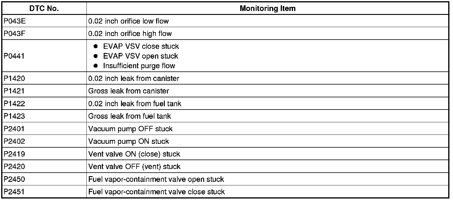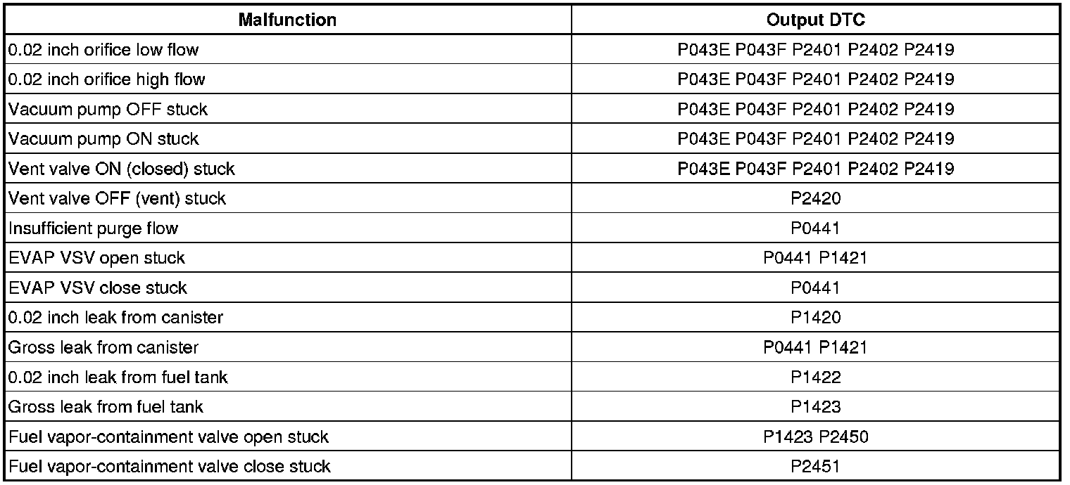 EVAP Related DTCs