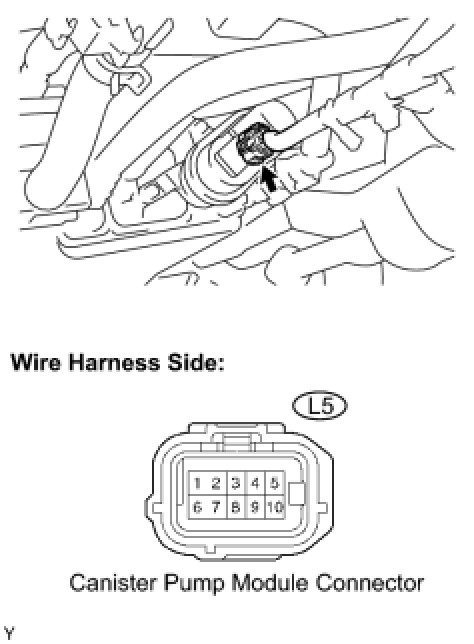 - Disconnect the hose between the canister and fuel tank from the canister. Close the canister on the area where the hose was connected and perform an inspection. The fuel tank can be eliminated from the suspected areas for leak checks.