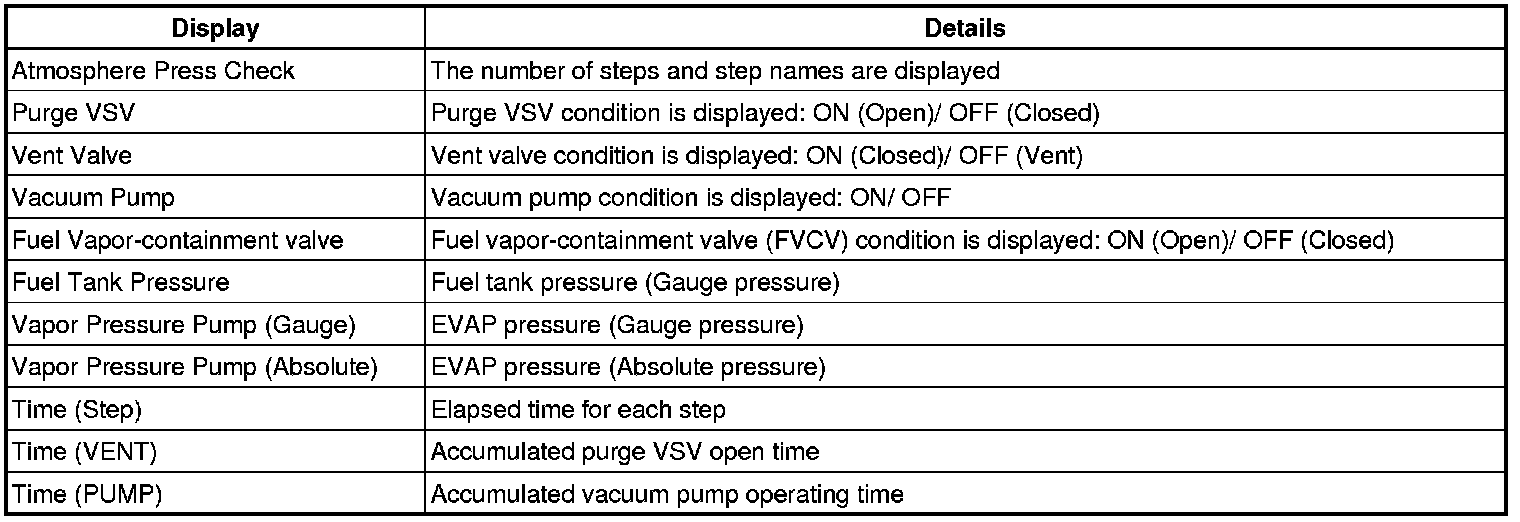 HINT: In the manual operation check, the EVAP system can be checked in signal steps. Valve operation and pressure in each step can also be checked.