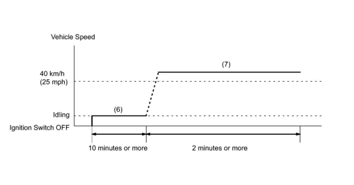 (4) Deactivate the inspection mode and drive the vehicle at 44 to 55 mph (70 to 88 km/h) or more for 5 to 10 minutes.