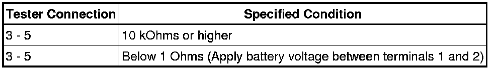 If the result is not as specified, replace the relay.