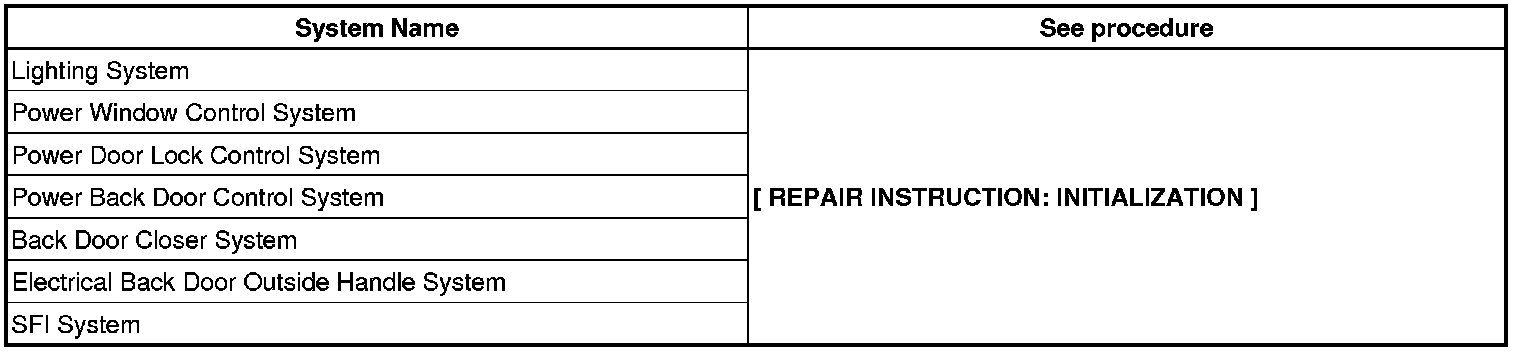 NOTE: When disconnecting the negative (-) battery cable, initialize the following systems after the cable is reconnected.