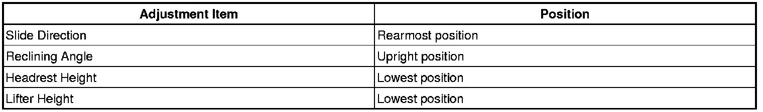 (2) Adjust the seat position according to the table below.