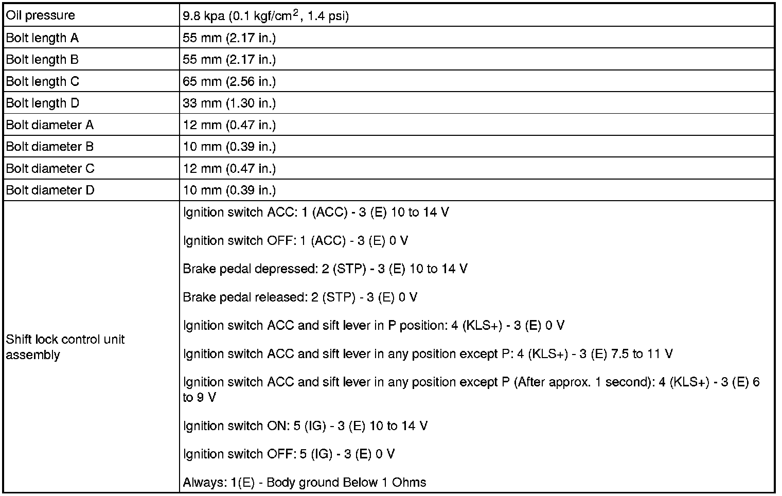 SERVICE SPECIFICATIONS: P310 HYBRID TRANSMISSION / TRANSAXLE:
