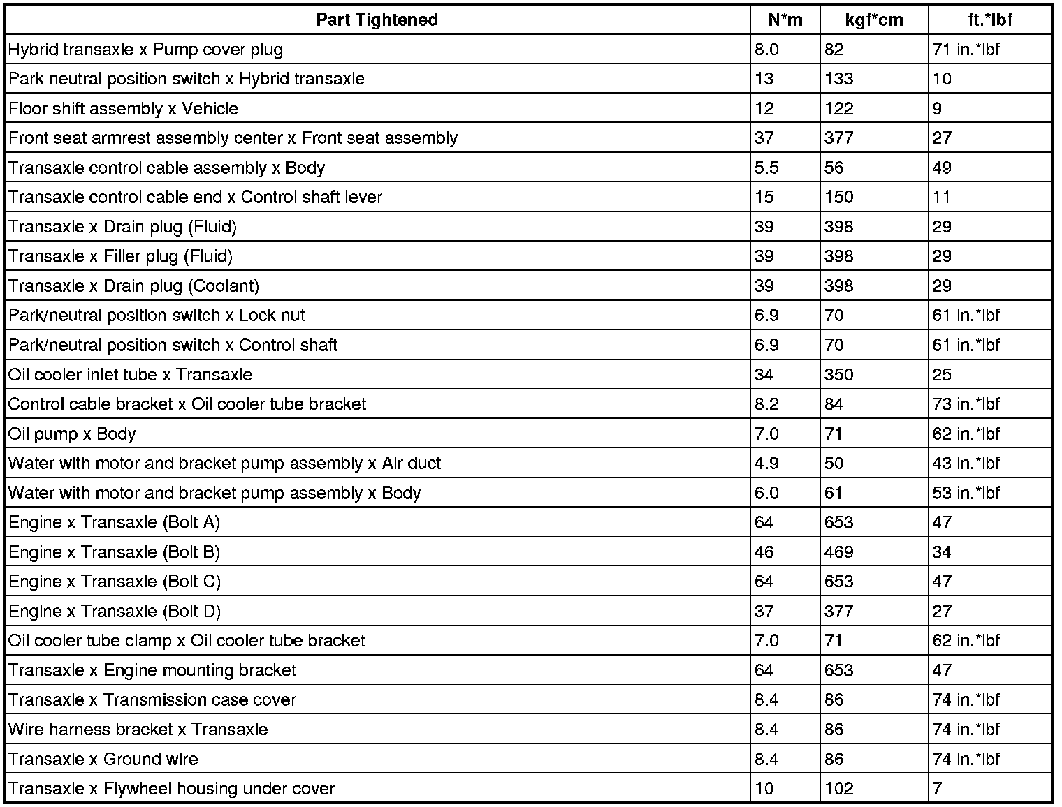 SERVICE SPECIFICATIONS: P310 HYBRID TRANSMISSION / TRANSAXLE:
