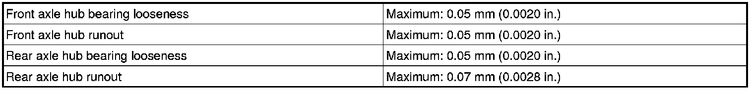 SERVICE SPECIFICATIONS: AXLE: