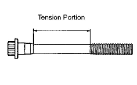 CYLINDER HEAD SET BOLTUsing vernier calipers, measure the tension portion diameter of the bolt.