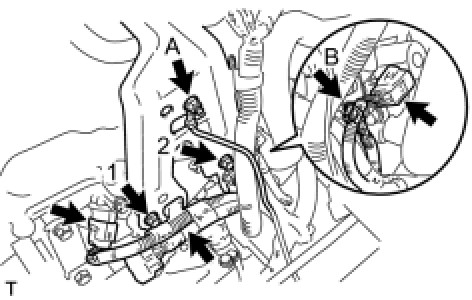 Using several steps, install and tighten the 2 bolts and intake air connector bracket No.2 uniformly in the sequence shown in the illustration.