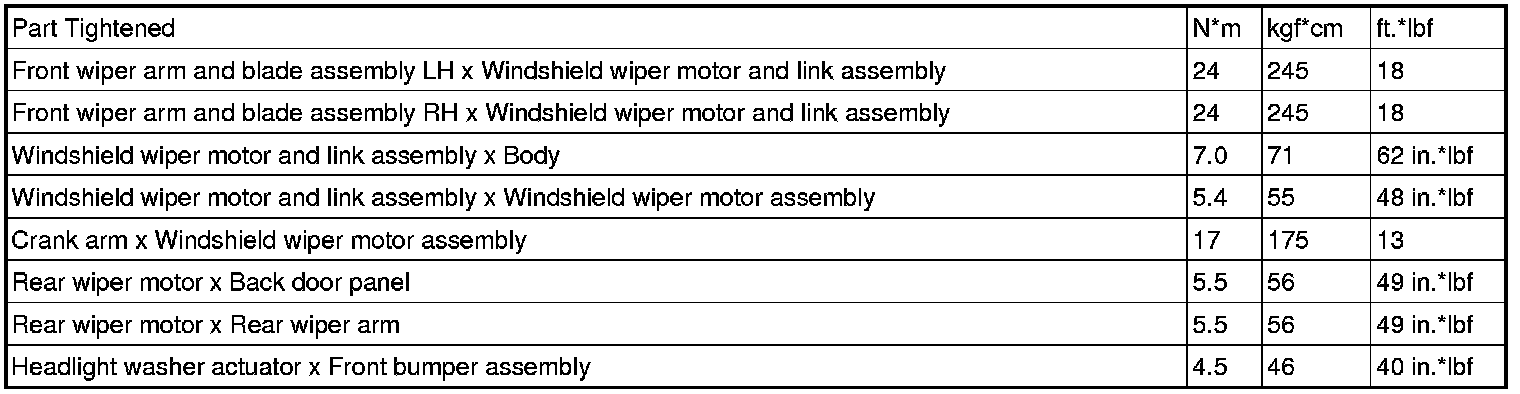 SERVICE SPECIFICATIONS: WIPER AND WASHER: