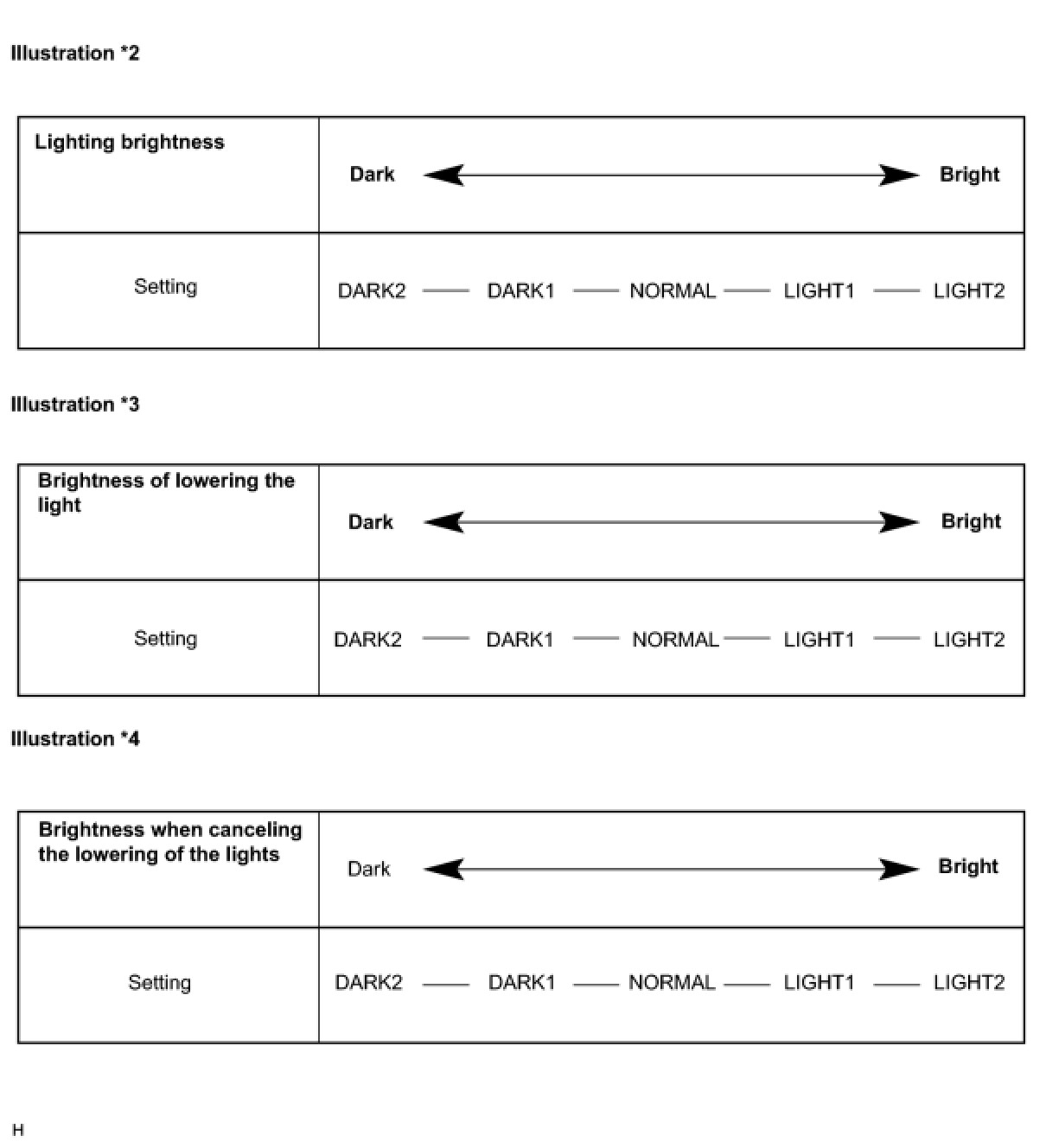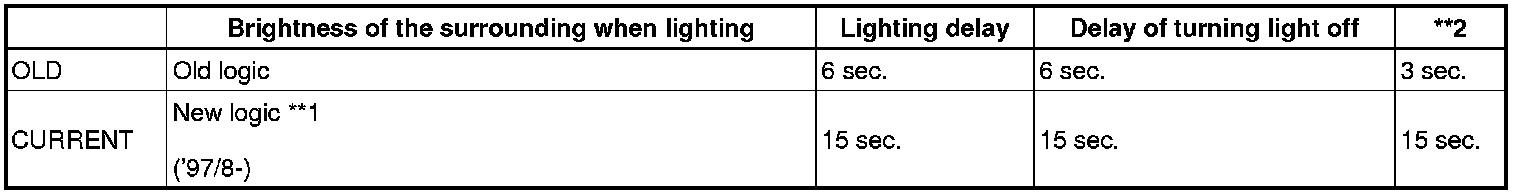 **2: Delay time until the headlight is turned on when it suddenly gets dark.