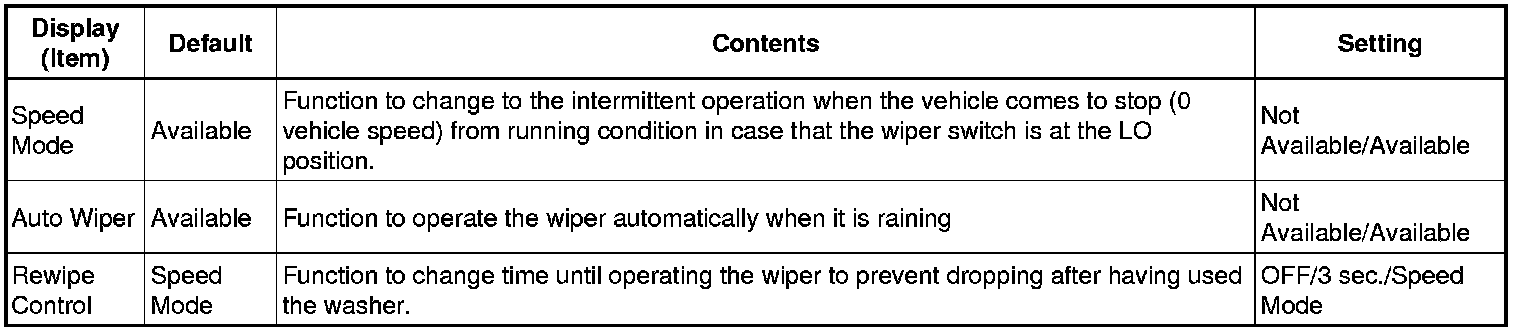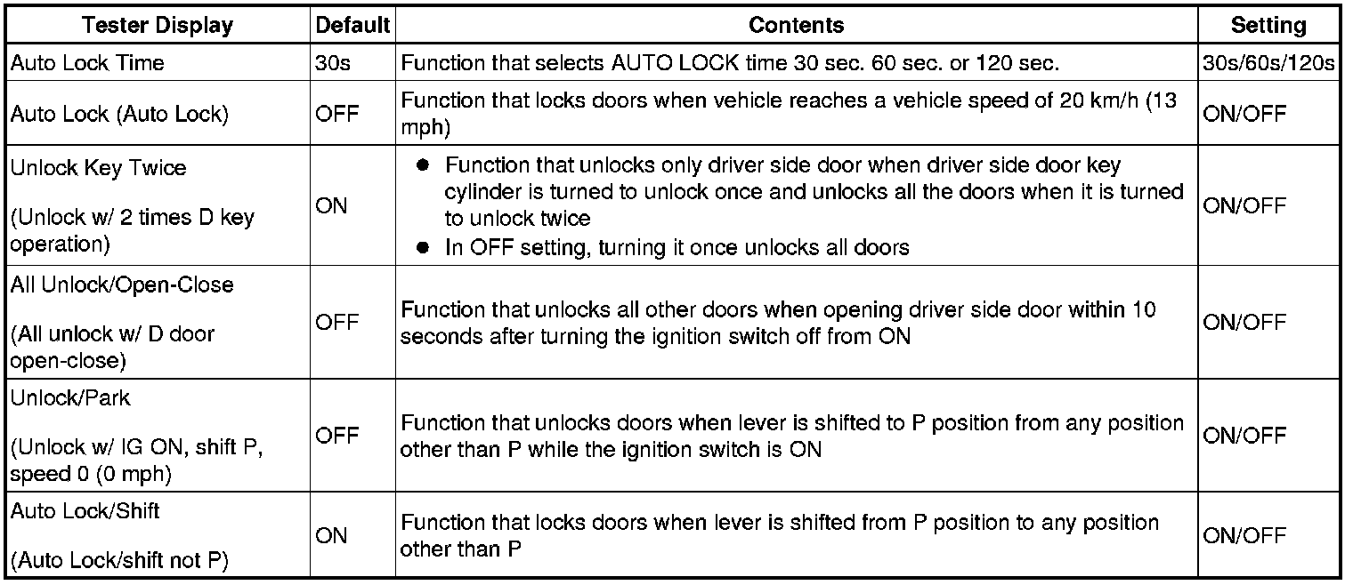 - When either the battery cable or the combination meter connector is disconnected, these buzzers are set on (enabled).