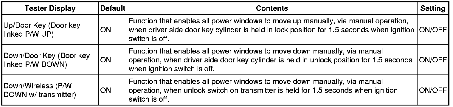 - *1: Wireless (transmitter switch) operation of the power back door is disabled.