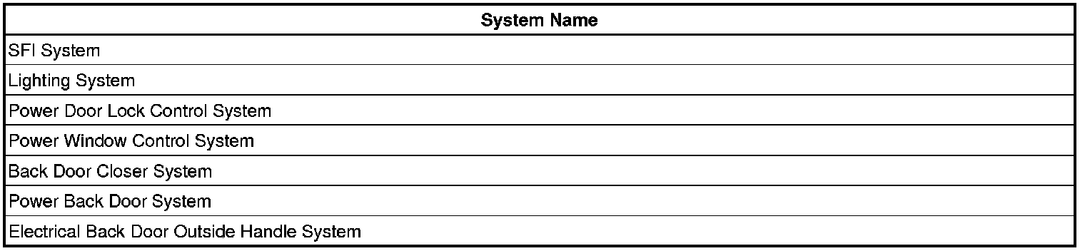 The power back door ECU records the fully open position and the fully closed position of the power back door in its memory and the power back door fully opens and fully closes based on this memory. In the case where any of the batteries, fuses, power back door ECU or power back door drive unit are removed and then reinstalled, the power back door ECU loses the memory of the door positions. In such cases, resetting the system is necessary. However the back door closer system has no effect on ECU memory.