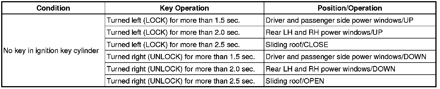 6. MANUAL UP/DOWN FUNCTION USING DRIVER SIDE DOOR LOCK KEY CYLINDER