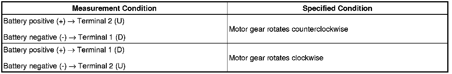 (b) Apply battery voltage to the motor connector according to the table below.