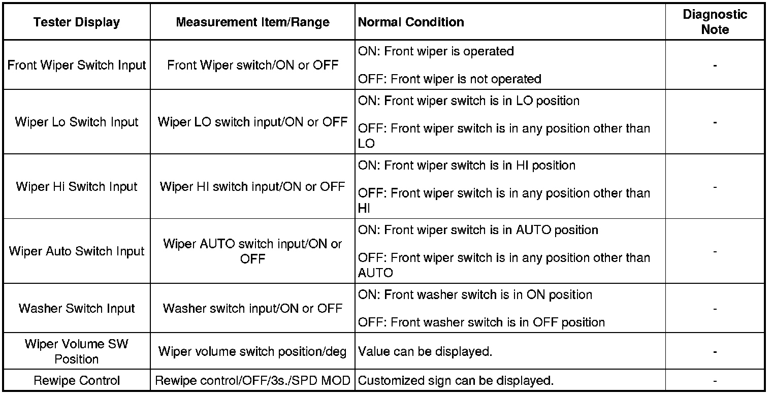 (d) Enter the following menus: Body Electrical / Wiper / Data List.