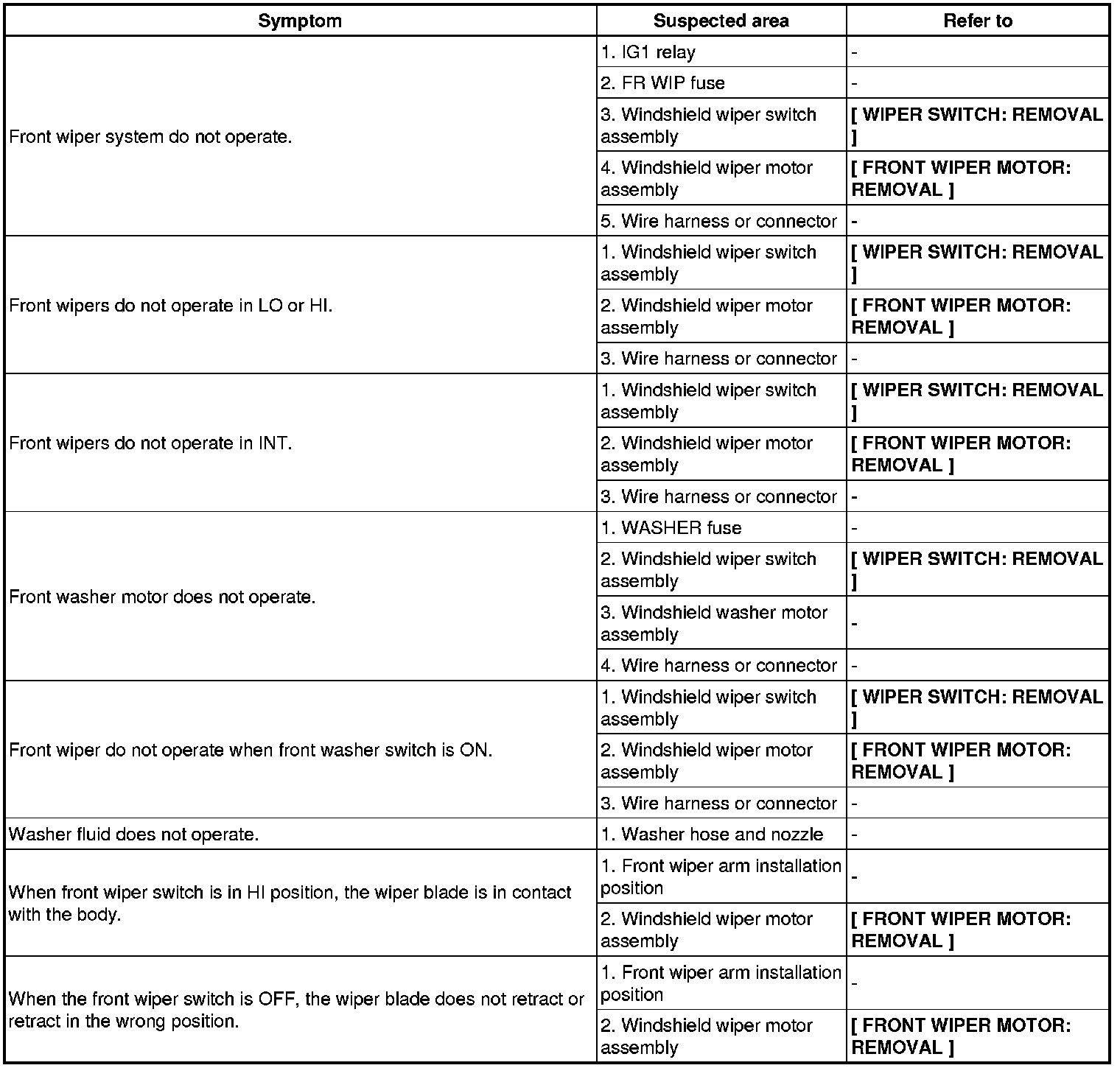 FRONT WIPER AND WASHER SYSTEM (W/O AUTO WIPER SYSTEM)