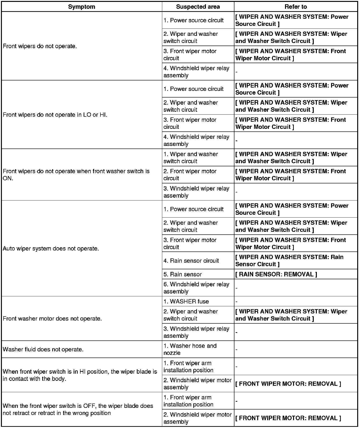 FRONT WIPER AND WASHER SYSTEM (W/AUTO WIPER SYSTEM)