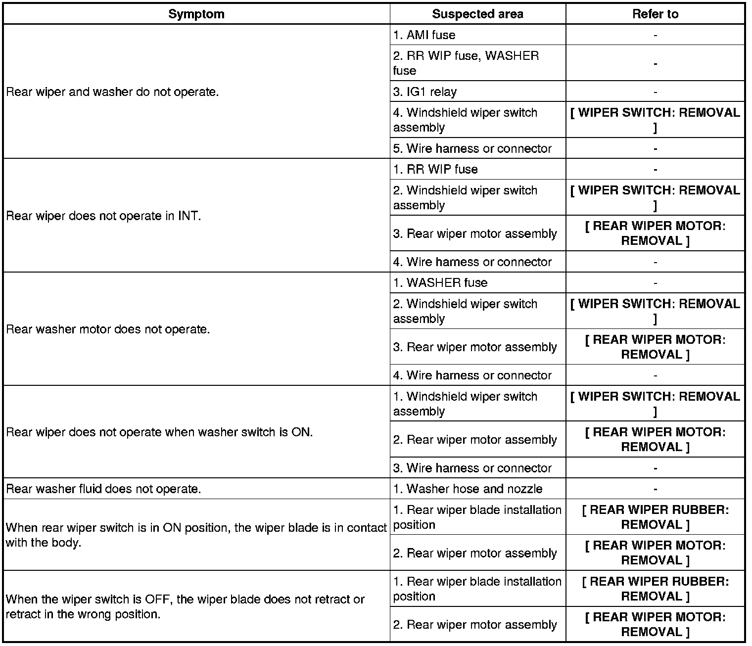REAR WIPER AND WASHER SYSTEM