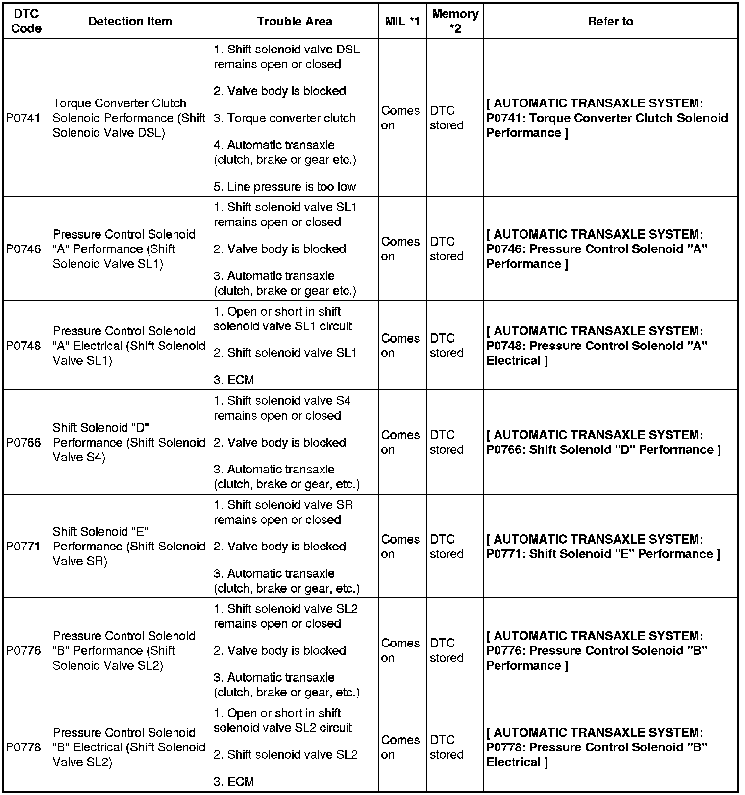 U151E AUTOMATIC TRANSAXLE: AUTOMATIC TRANSAXLE SYSTEM: DIAGNOSTIC TROUBLE CODE CHART