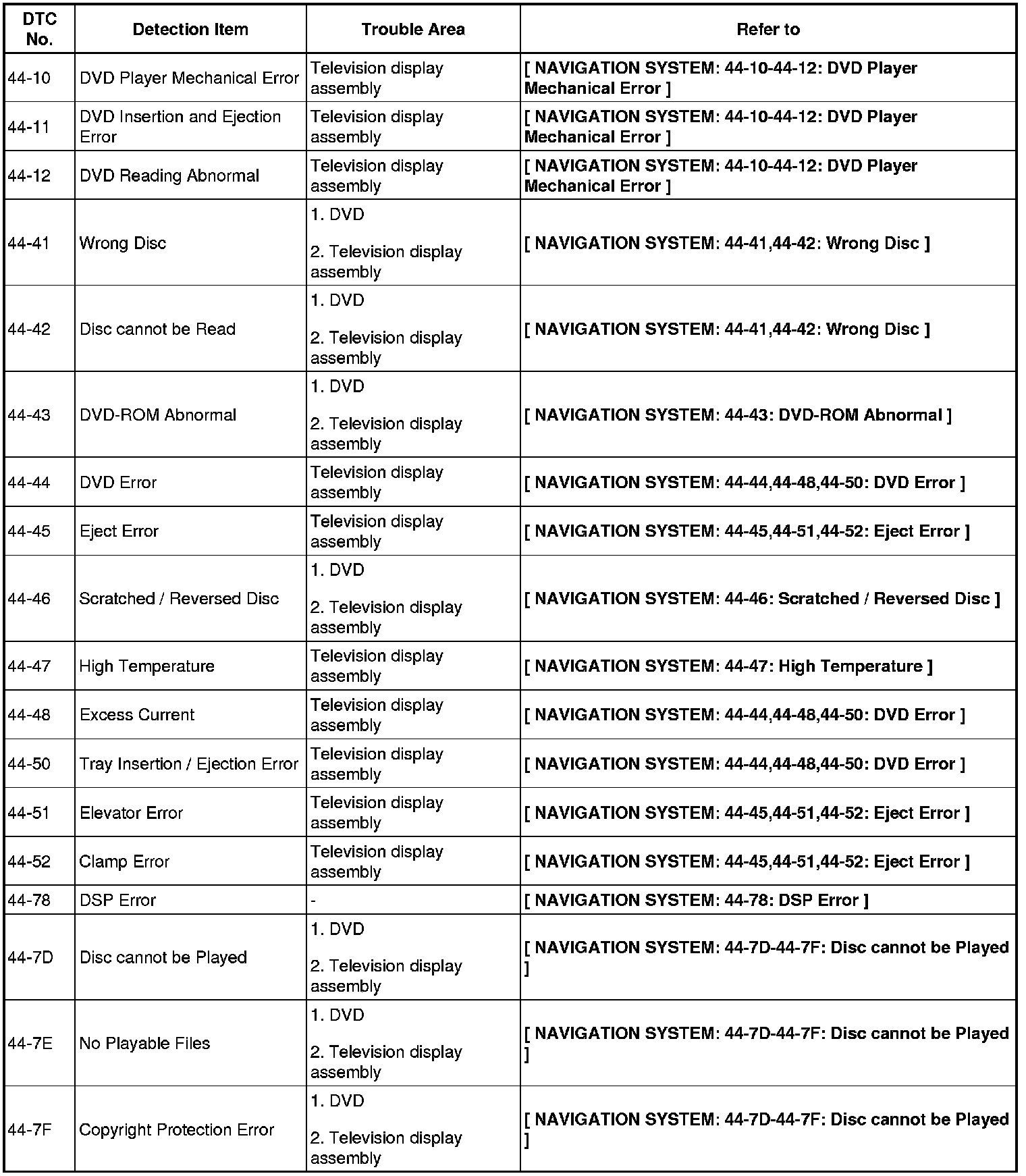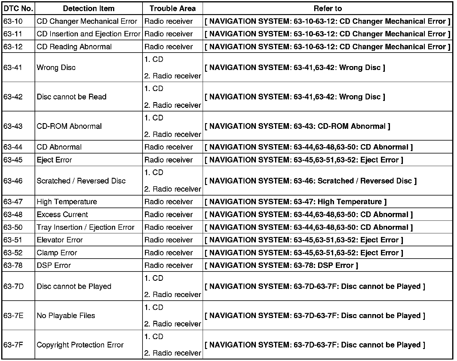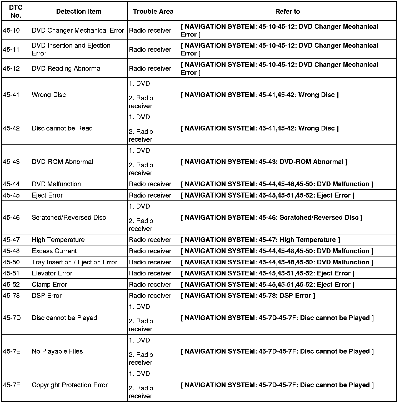 NAVIGATION: NAVIGATION SYSTEM: DIAGNOSTIC TROUBLE CODE CHART