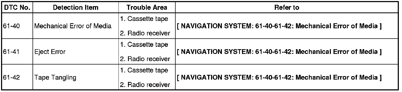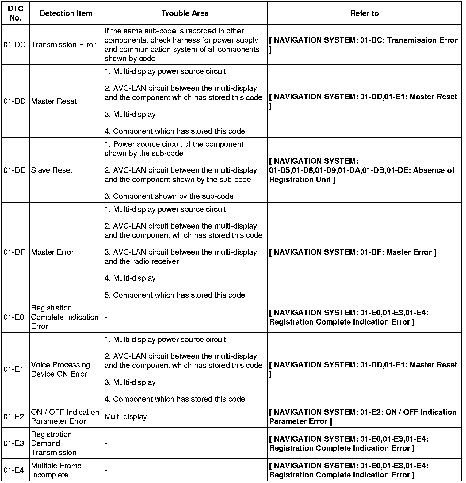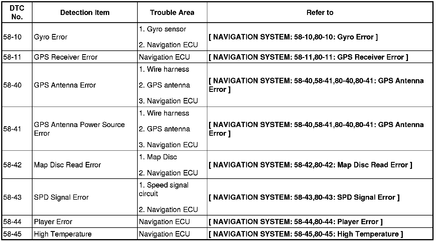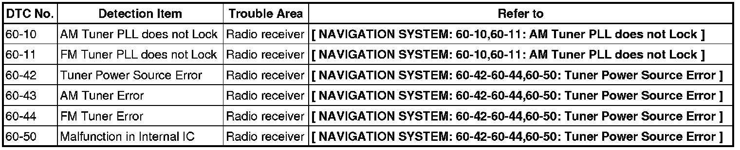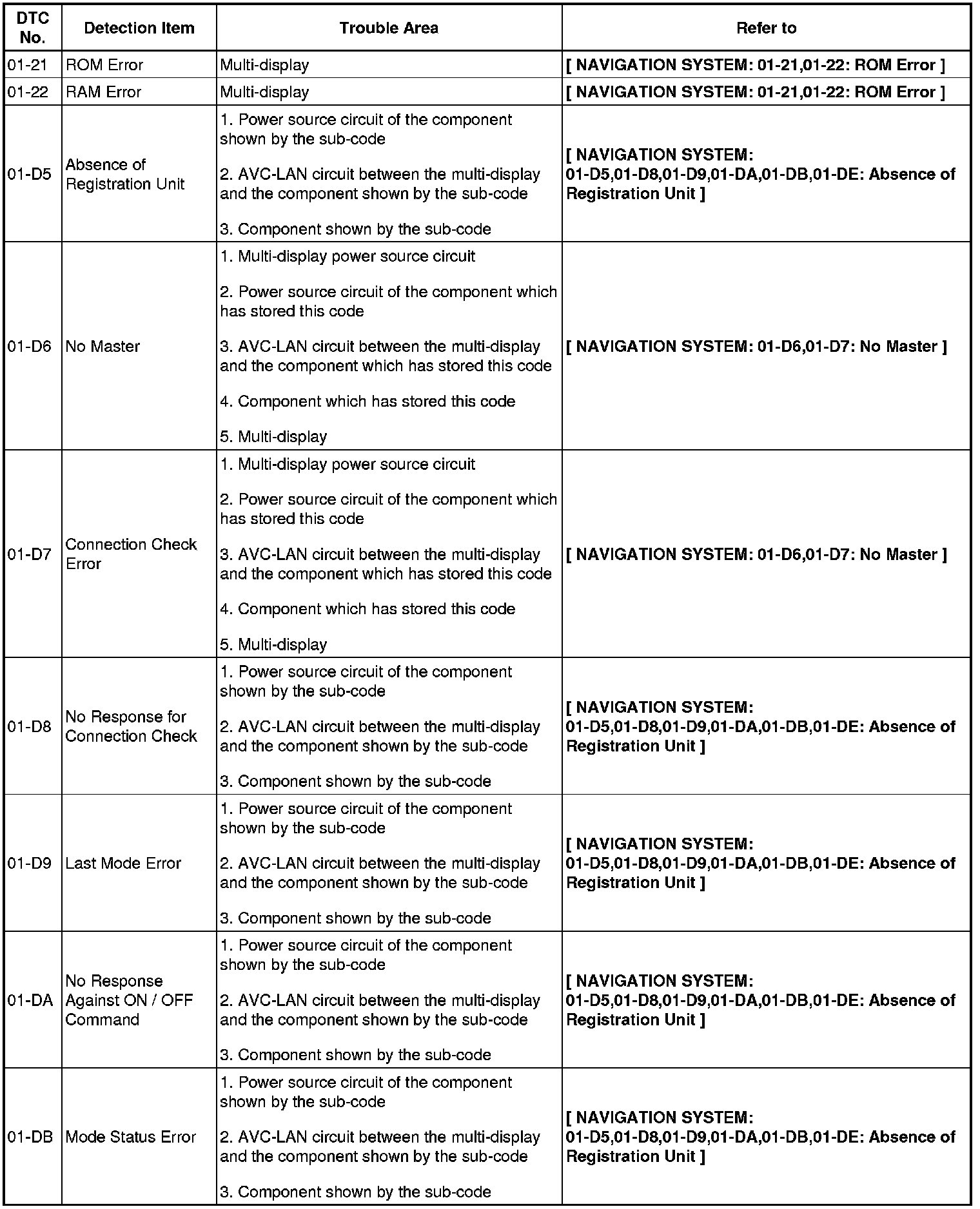 NAVIGATION: NAVIGATION SYSTEM: DIAGNOSTIC TROUBLE CODE CHART