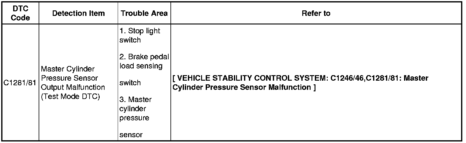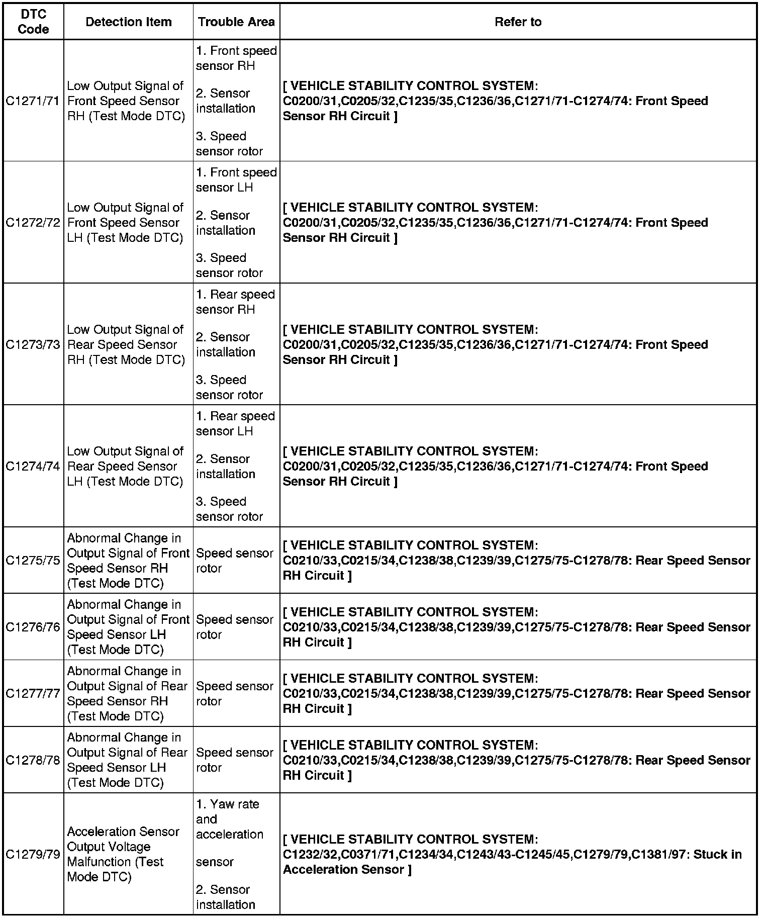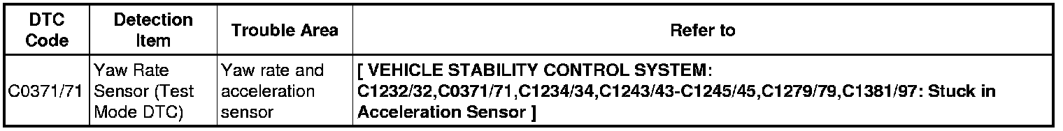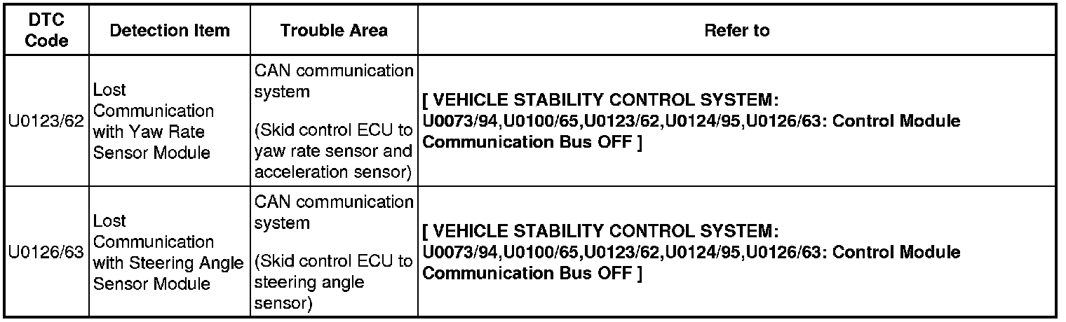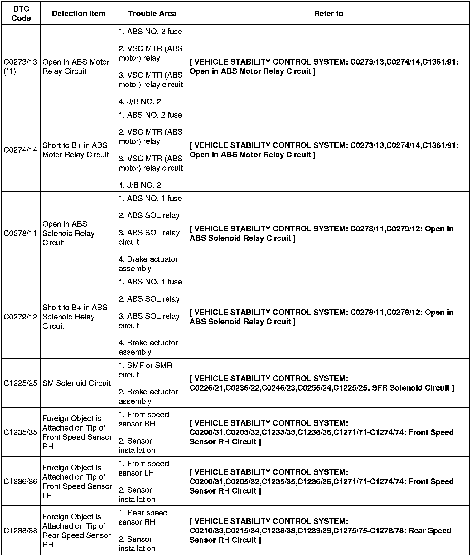 BRAKE CONTROL: VEHICLE STABILITY CONTROL SYSTEM: DIAGNOSTIC TROUBLE CODE CHART