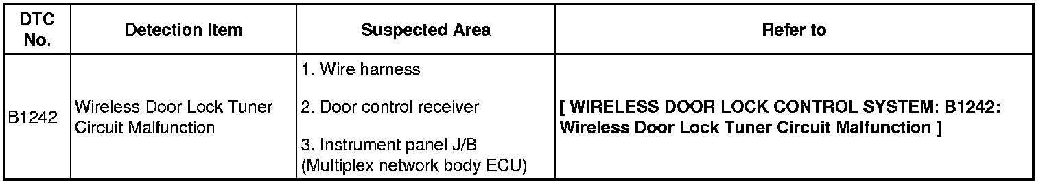 DOOR LOCK: WIRELESS DOOR LOCK CONTROL SYSTEM: DIAGNOSTIC TROUBLE CODE CHART