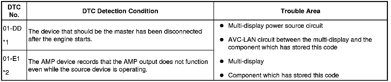 (2) Check for an open or short in the AVC-LAN circuit between the multi-display and the component which has stored this code.