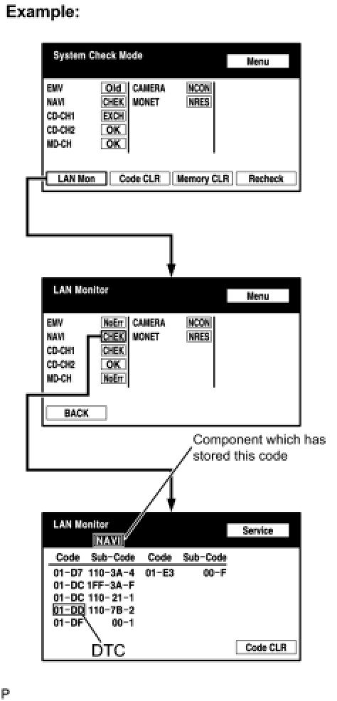 (a) Referring to the AVC-LAN wiring diagram below, check the AVC-LAN circuit between the multi-display and the component which has stored this code.
