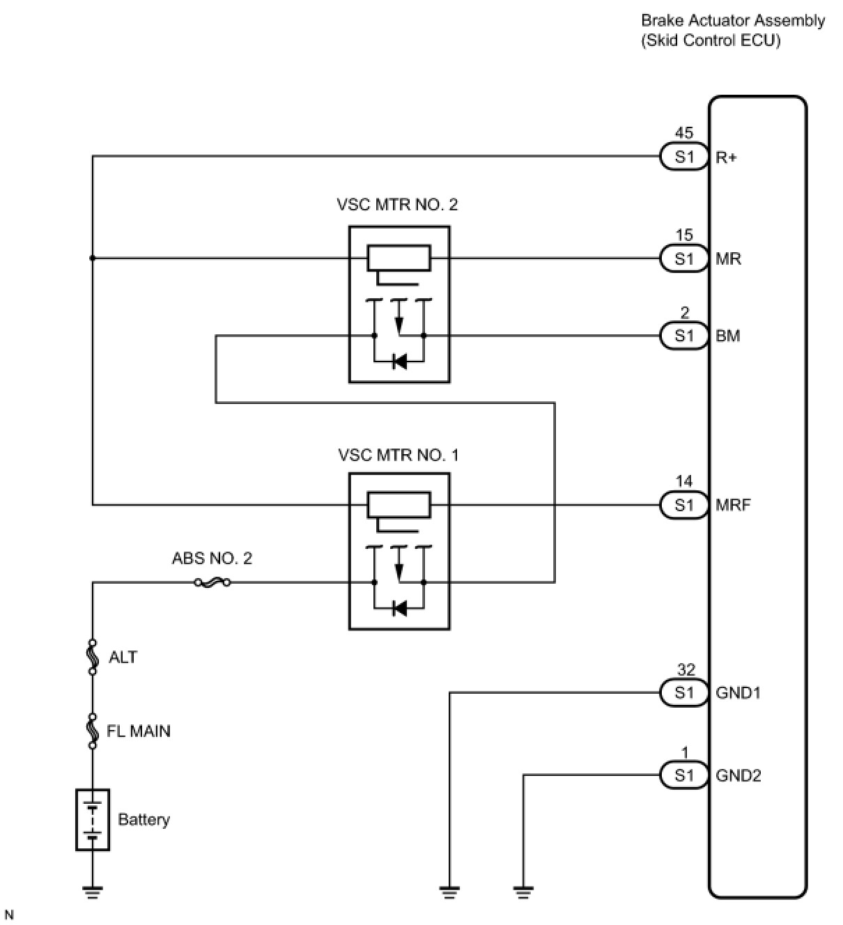 - While any of the ABS, BA, TRAC and VSC is operating, the skid control ECU (included in the actuator) turns the ABS motor relay 2 on to operate the actuator pump motor.