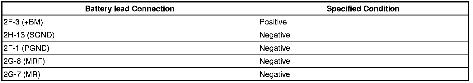 (b) Connect the battery positive lead to terminal +BM of the J/B NO. 2 and the negative lead to terminal SGND, PGND, MRF and MR.