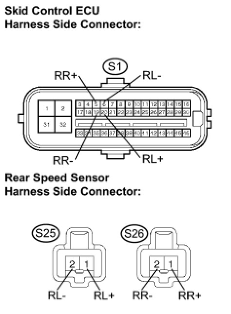 4. CHECK HARNESS AND CONNECTOR (REAR SPEED SENSOR - SKID CONTROL ECU)